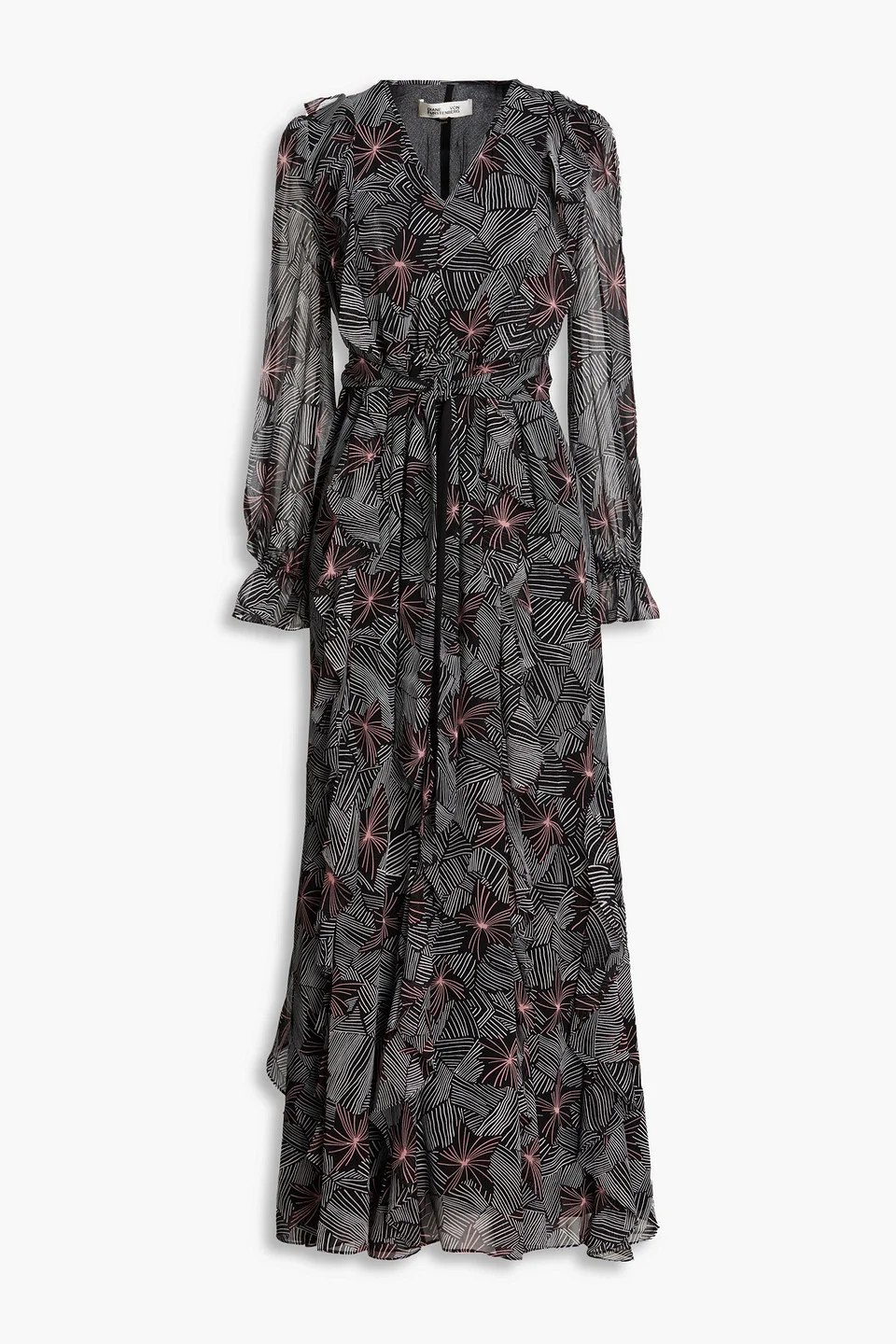 Dress printed chiffon ruffled detachable waist tie elasticated cuffs slips on fully lined non-stretchy fabric lightweight fabric dry clean imported 100% Polyester Product Code 1647597318455882