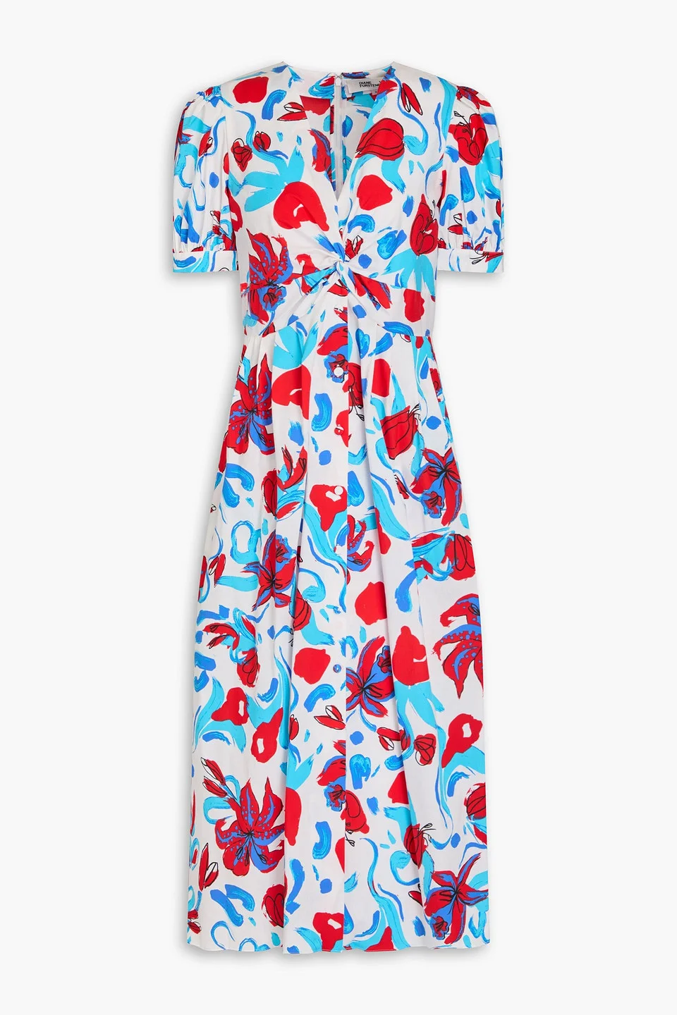Dress floral-print cotton-blend poplin twisted partially elasticated waist buttoned cuffs concealed hook and zip fastening at back button fastenings through front mid-weight, slightly stretchy fabric dry clean imported 68% Cotton 28% Nylon 4% Spandex Product Code 46376663162883061
