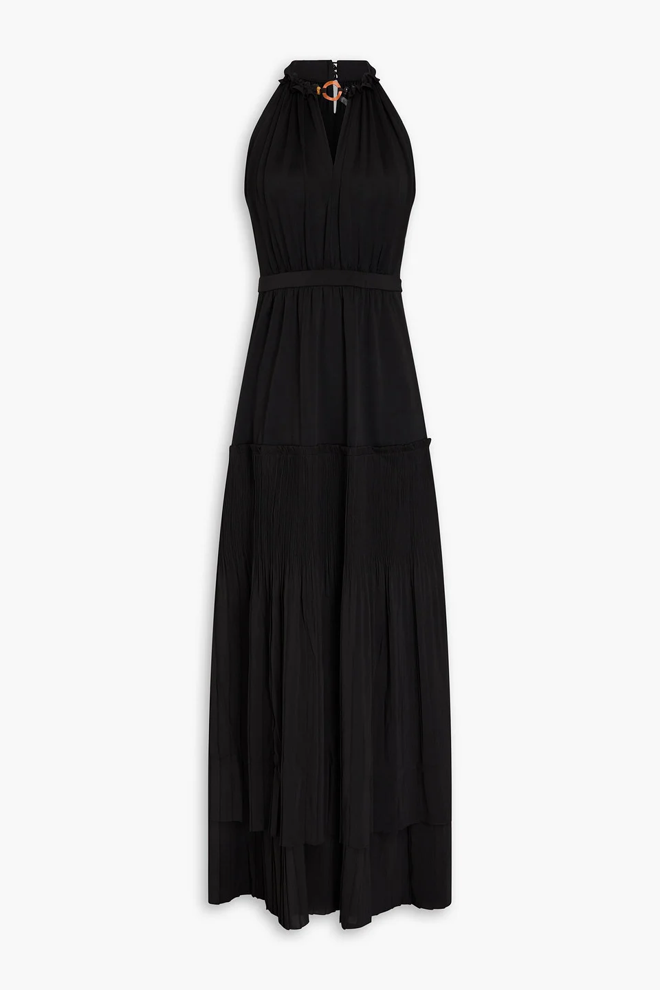 Hugo embellished plissé-crepe and stretch-jersey maxi dress
