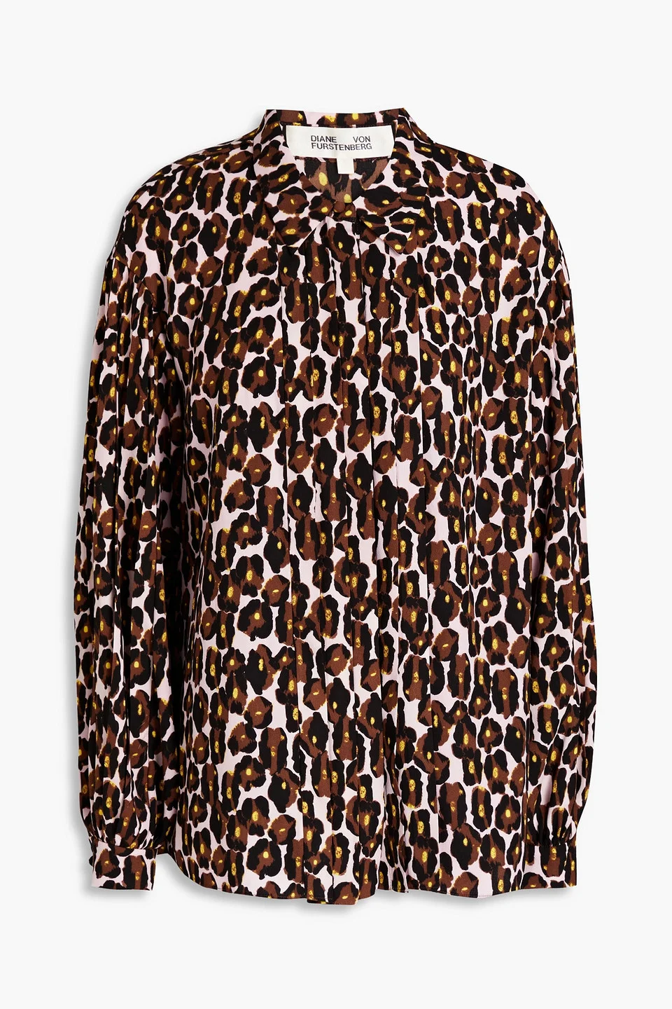 Shirt leopard-print crepe de chine pleated buttoned cuffs partially concealed button fastenings through front non-stretchy fabric mid-weight fabric dry clean imported 100% Polyester Product Code 1647597285166934