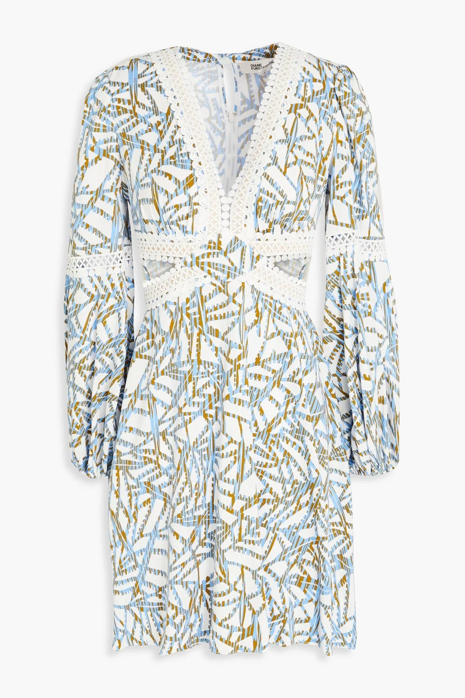 Dress printed twill guipure lace trims cutout elasticated cuffs button-fastening keyhole at back concealed hook and zip fastening at back mid-weight, non-stretchy fabric dry clean imported 100% Viscose Product Code 1647597358886617