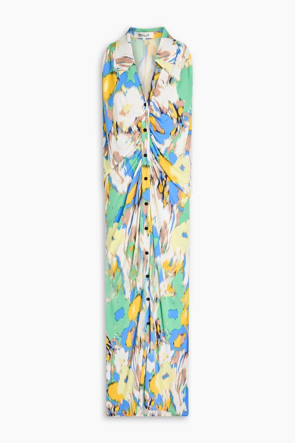 Shirt dress printed jersey ruched button fastenings through front mid-weight, stretchy fabric dry clean imported 100% Viscose Product Code 46376663162883432
