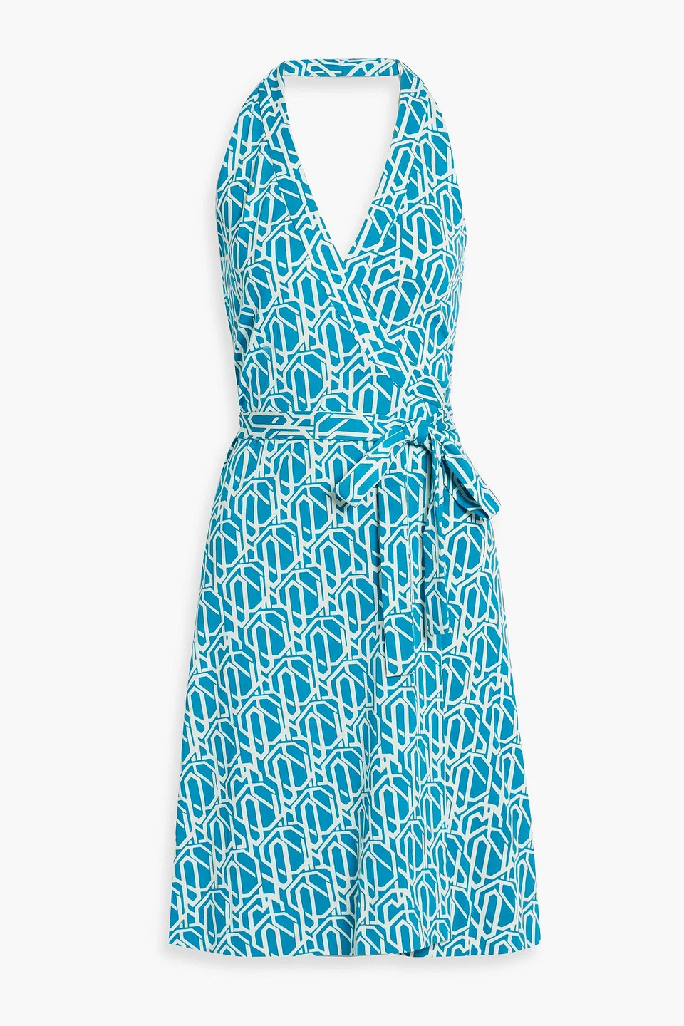 Nishi printed cotton and silk-blend jersey halterneck wrap dress