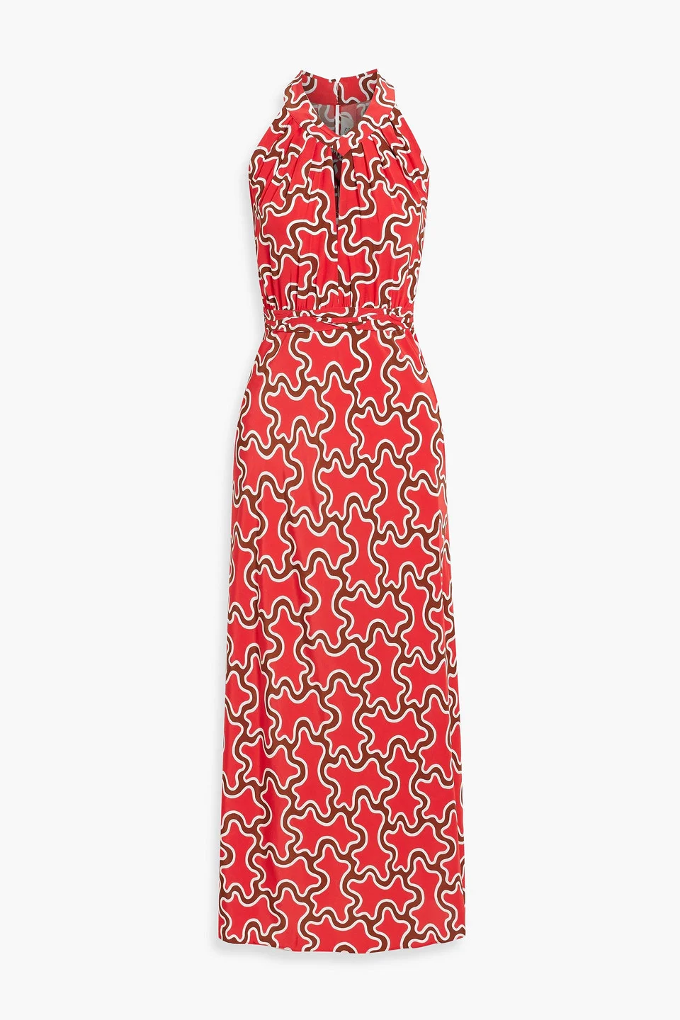 Dress printed crepe de chine pleated cutout button and concealed zip fastening at back mid-weight, non-stretchy fabric dry clean imported 100% Viscose Product Code 46376663162892563
