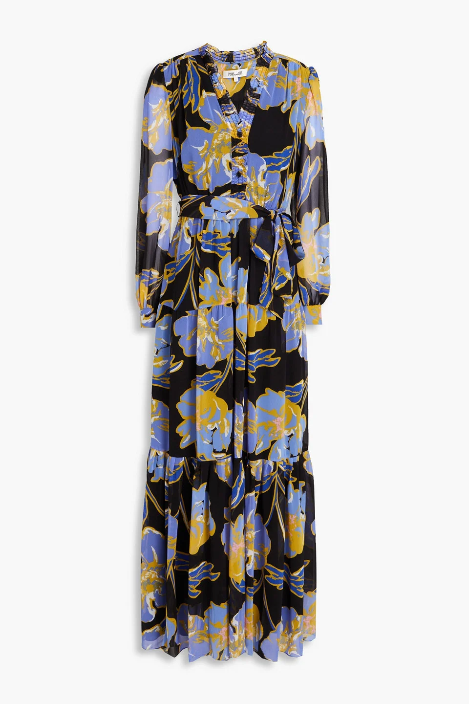 Dress floral-print georgette ruffled trims tiered detachable waist tie buttoned cuffs two side slit pockets button fastenings along front concealed zip fastening along side partially lined lightweight, non-stretchy fabric dry clean imported 100% Polyester Product Code 1647597313496935