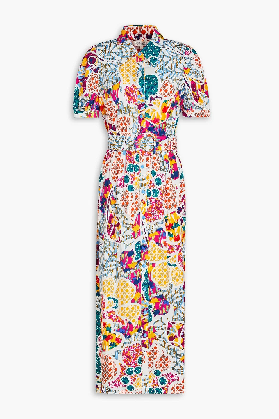 Shirt dress printed poplin cotton-blend detachable belt buttoned cuffs two side slit pockets button fastenings through front mid-weight, slightly stretchy fabric dry clean imported 98% Cotton 2% Spandex Product Code 1647597358589896