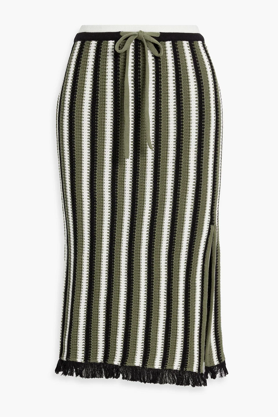 Skirt striped crocheted cotton elasticated drawstring waist side split frayed hem slips on mid-weight knit dry clean imported 100% Cotton Product Code 46376663162895950