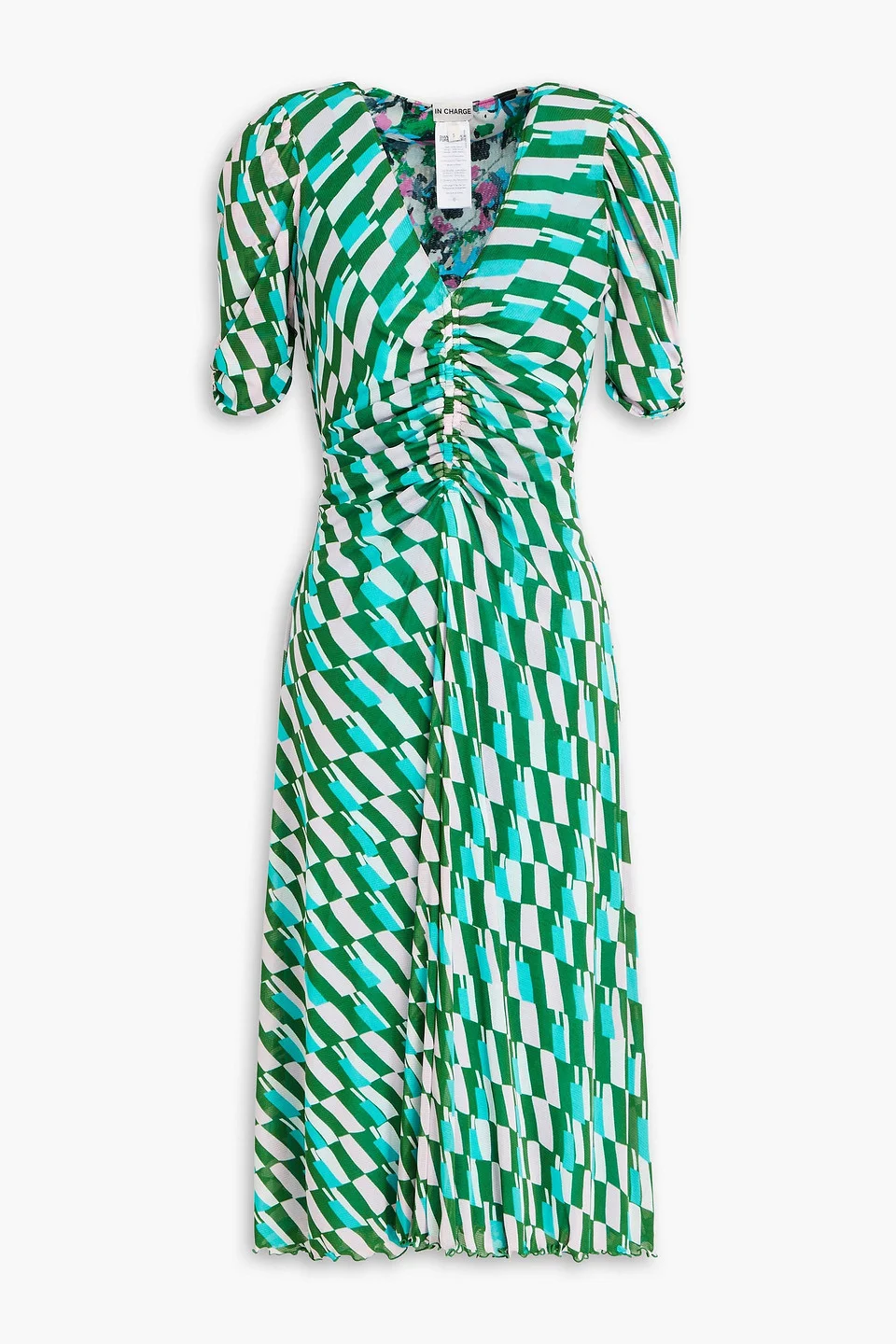 Dress printed stretch-mesh ruched reversible slips on fully lined dry clean imported 100% Nylon Product Code 1647597347768017