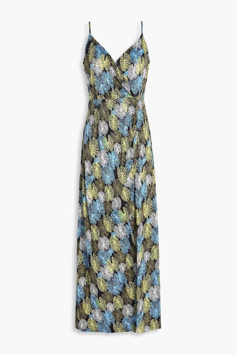 Dress printed jersey wrap-effect adjustable straps concealed zip fastening along side mid-weight, stretchy fabric dry clean imported 59% Viscose 21% Cotton 20% Modal Product Code 46376663162882759