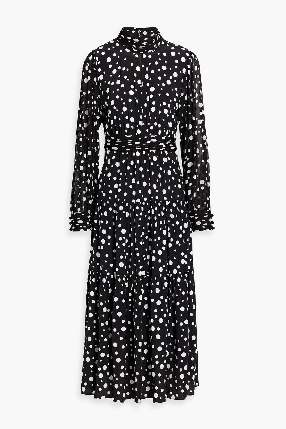 Sai tiered polka-dot crepe de chine and chiffon midi dress