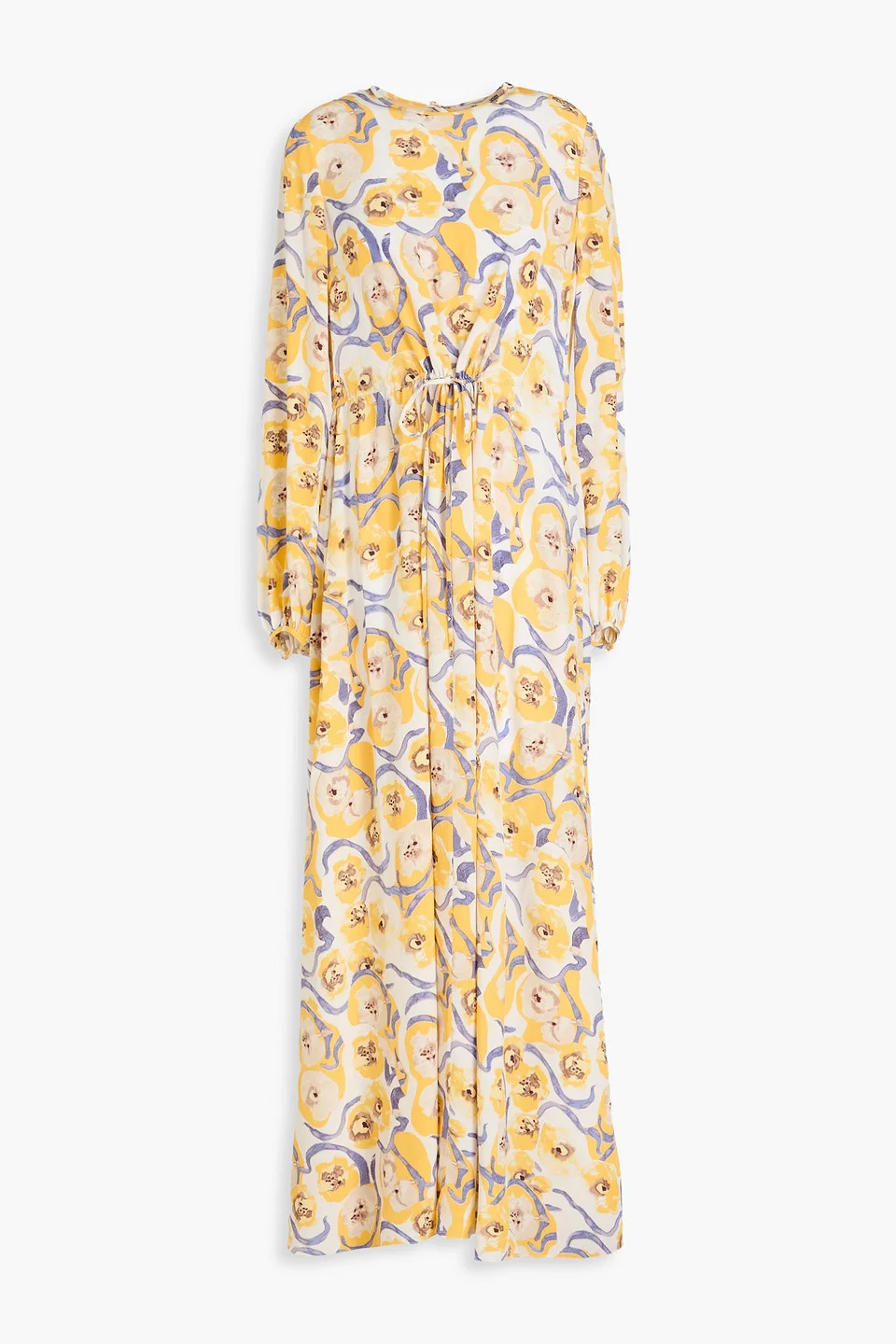 Dress floral-print crepe de chine drawstring waist buttoned cuffs two side slit pockets button-fastening keyhole at back mid-weight, non-stretchy fabric dry clean imported 100% Viscose Product Code 1647597347880989