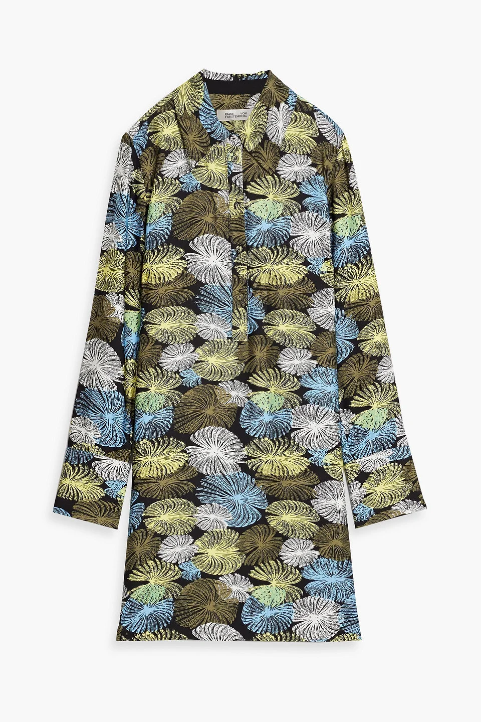Shirt dress printed jersey buttoned cuffs button fastenings through front mid-weight, slightly stretchy fabric dry clean imported 100% Viscose Product Code 46376663162895272
