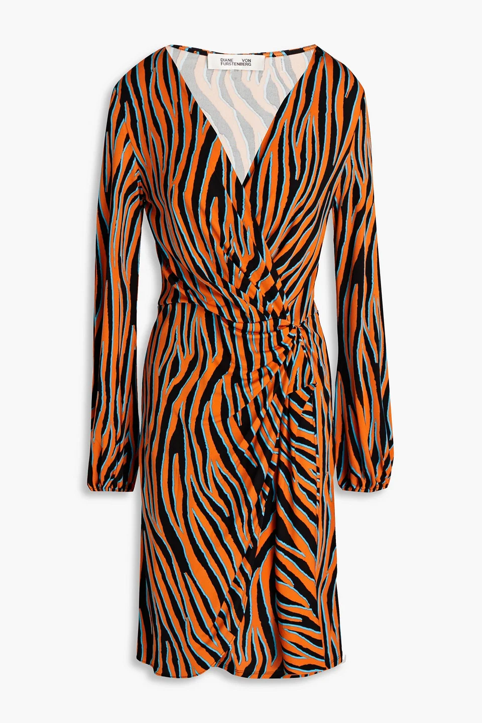 Dress zebra-print jersey wrap-effect draped elasticated cuffs concealed zip fastening along side slightly stretchy fabric mid-weight fabric dry clean imported 100% Viscose Product Code 1647597293632574