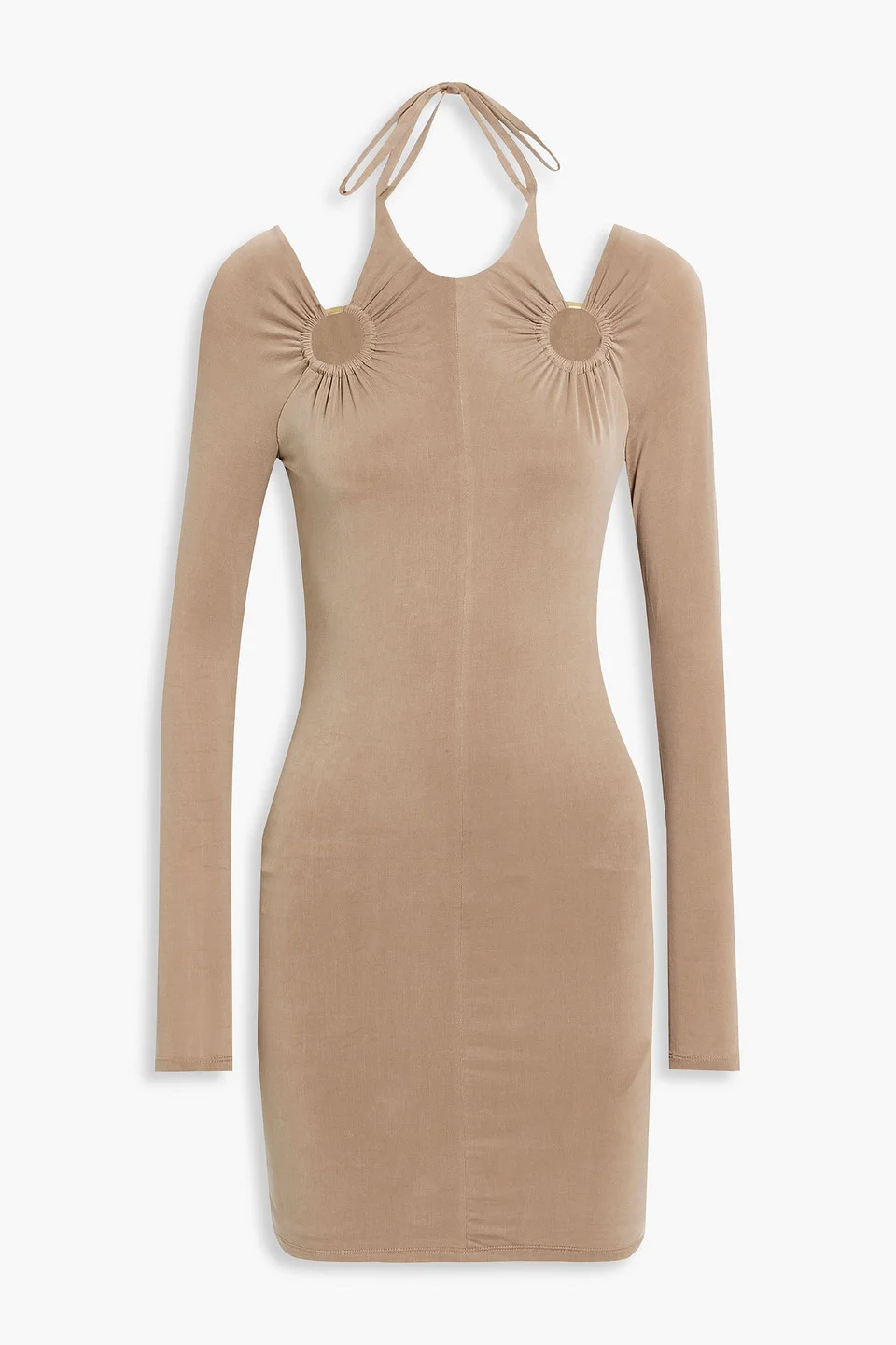 Dress cupro-blend halterneck ruched cutouts ties at neck partially lined mid-weight knit hand wash imported 93% Cupro 7% Elastane Product Code 1647597287937290