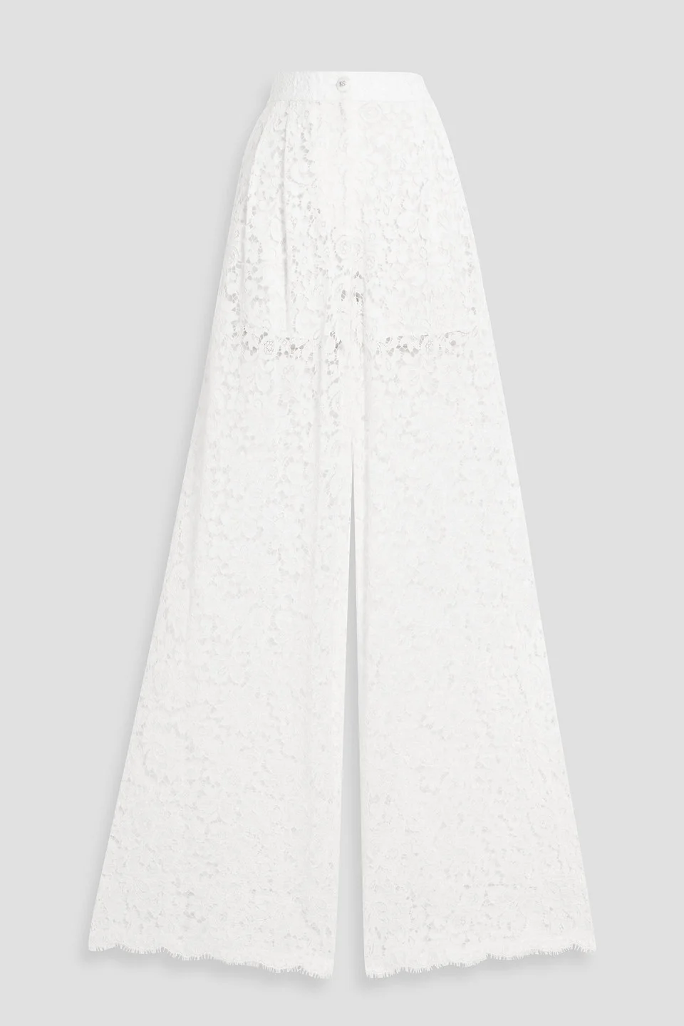 Wide-leg pants corded lace pleated front slant pockets partially elasticated waist high-rise cut detachable lining button and concealed zip fastening at front mid-weight, non-stretchy fabric dry clean made in italy 56% Viscose 39% Cotton 5% Polyamide Product Code 1647597325124513