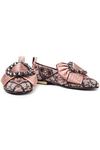 Crystal-embellished brocade loafers