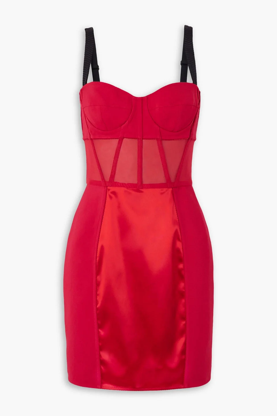 Dress cady tulle satin paneled zip fastening along back internal boning fully lined mid-weight, non-stretchy fabric dry clean made in italy Dolce&Gabbana's dresses are perfect for a birthday or special occasion, all eyes will be on you in this romantic red one. Made in Italy from cady and satin, it has a corset-inspired bodice with sheer tulle panels that contour your waist. Match your accessories to the black straps. 43% Viscose 32% Polyamide 19% Acetate 6% Elastane Product Code 1647597289351673
