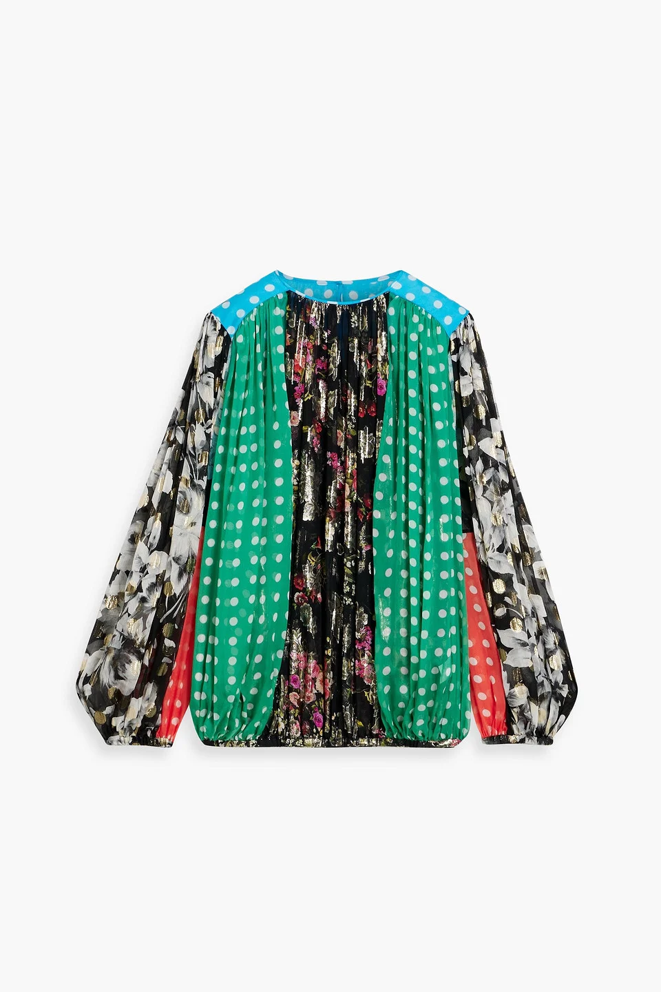 Blouse polka-dot floral-print metallic fil coupe chiffon paneled elasticated cuffs elasticated hem snap-fastening keyhole at back lightweight, non-stretchy sheer fabric dry clean made in italy 88% Silk 12% Polyester Product Code 1647597357763141