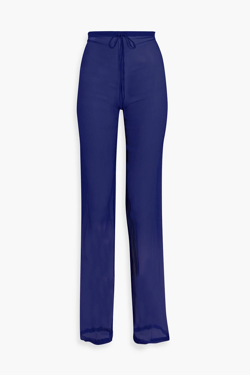 Straight-leg pants silk-crepon drawstring waist high-rise cut pull on non-stretchy fabric lightweight fabric machine wash or dry clean imported 100% Silk Product Code 1647597310360199