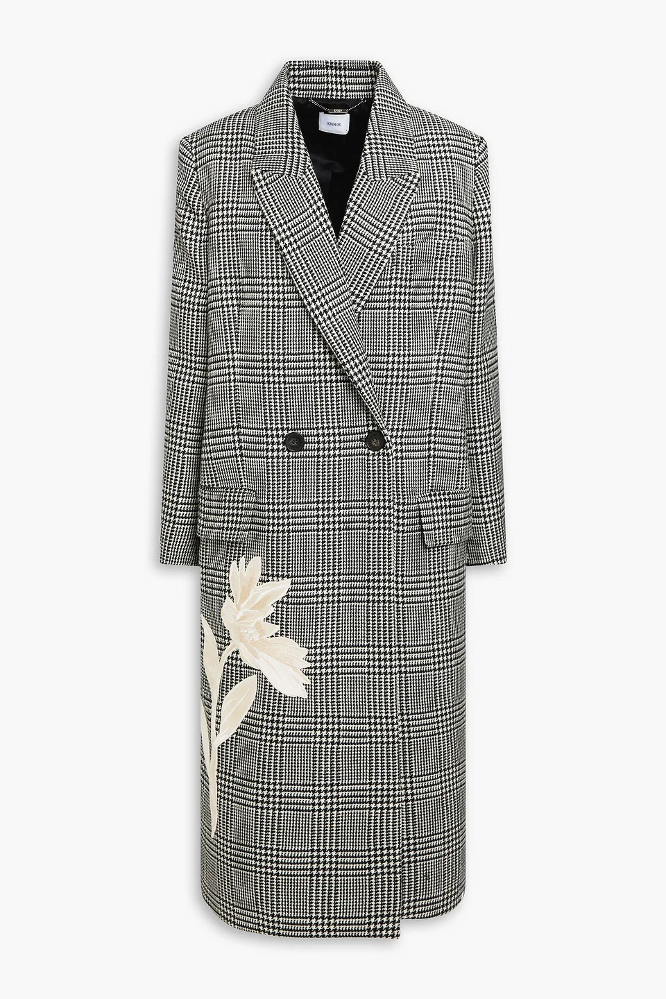 Coat prince of wales checked wool-tweed embroidered shoulder pads buttoned cuffs breast pocket front flap pockets back vent fully lined button fastening at double-breasted front mid-weight, non-stretchy fabric dry clean made in uk 100% Virgin Wool Product Code 46376663163006997