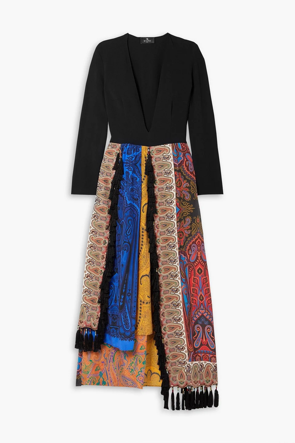 Dress metallic paisley-print woven silk paneled tassels asymmetric hem hook fastenings at base concealed zip fastening along side slightly stretchy fabric mid-weight fabric dry clean made in italy 66% Viscose 31% Acetate 3% Elastane Product Code 1647597304754488