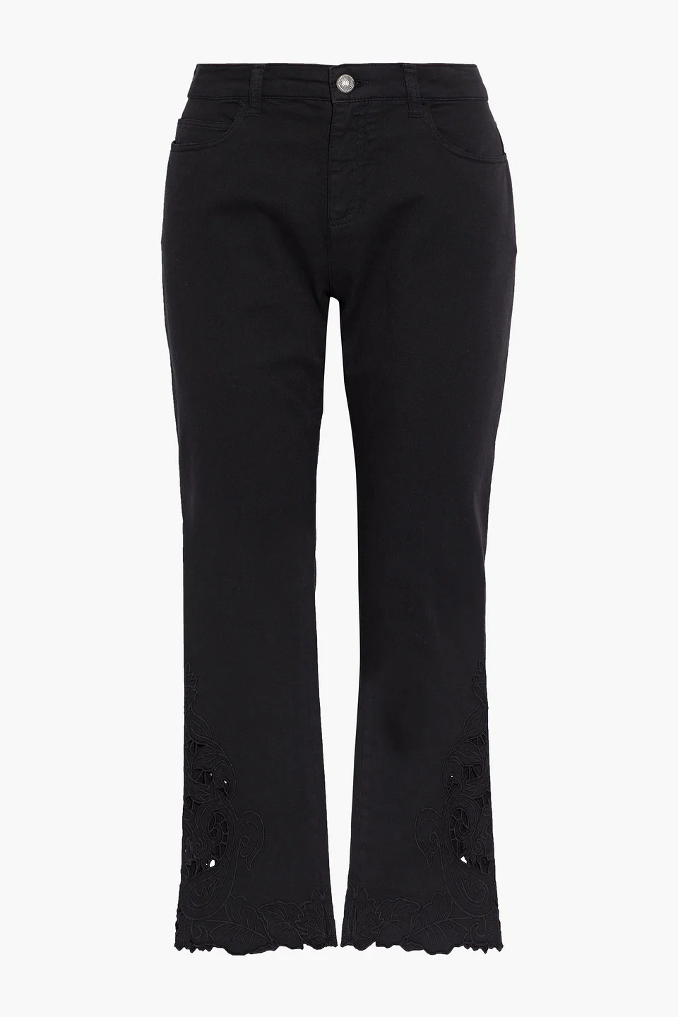 Cropped broderie anglaise-trimmed mid-rise bootcut jeans