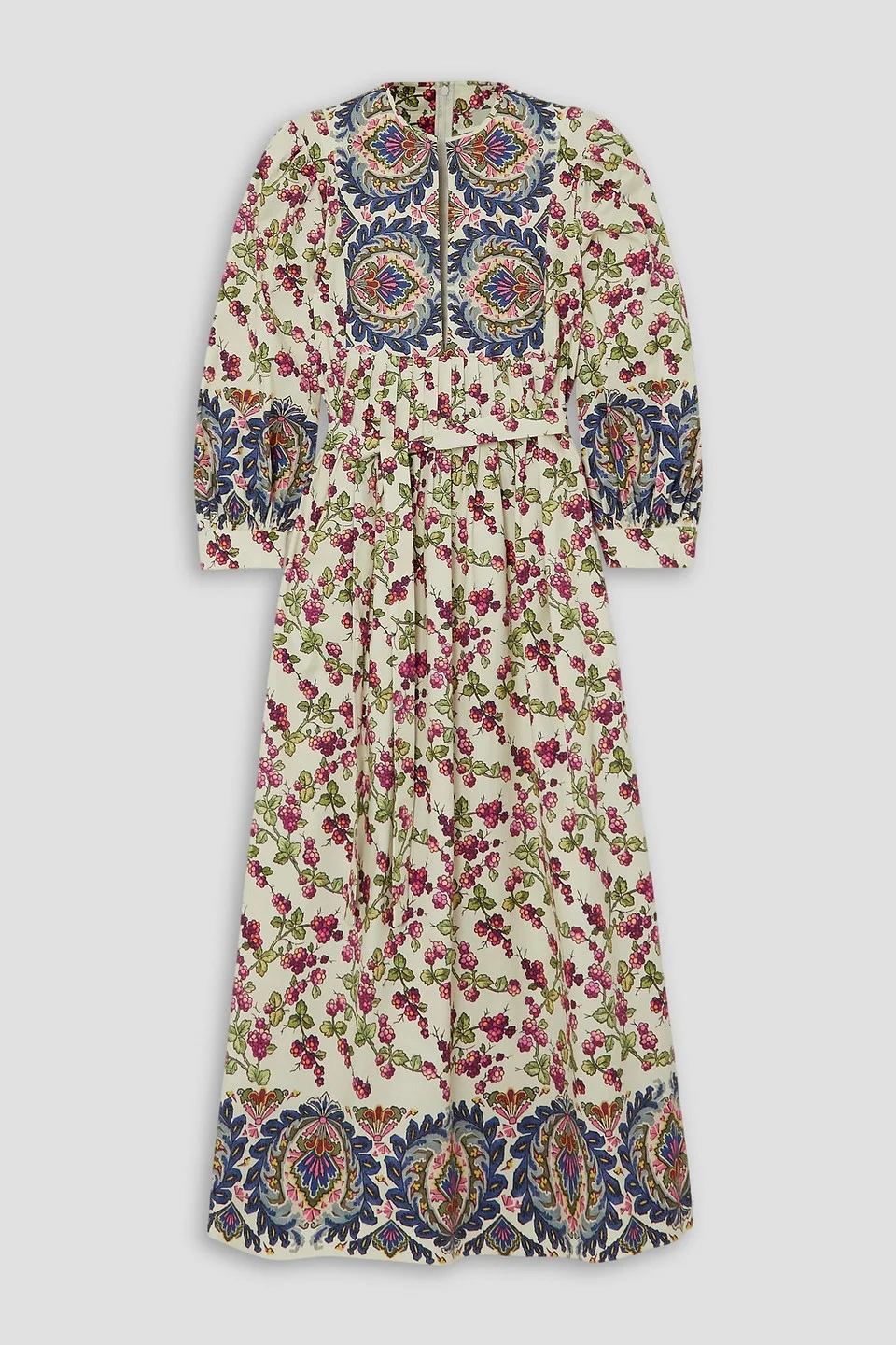 Dress floral-print poplin cotton-blend pleated detachable waist tie buttoned cuffs two side slit pockets concealed hook and zip fastening at back partially lined mid-weight, slightly stretchy fabric dry clean made in italy Etro makes such beautiful use of intricate florals with this midi dress, so it's sure to capture everyone's attention. It's made from crisp cotton-blend poplin with a hint of stretch for comfort and has romantic blouson sleeves. Brown and beige accessories will complement the warm color palette. 97% Cotton 3% Elastane Product Code 1647597347287443