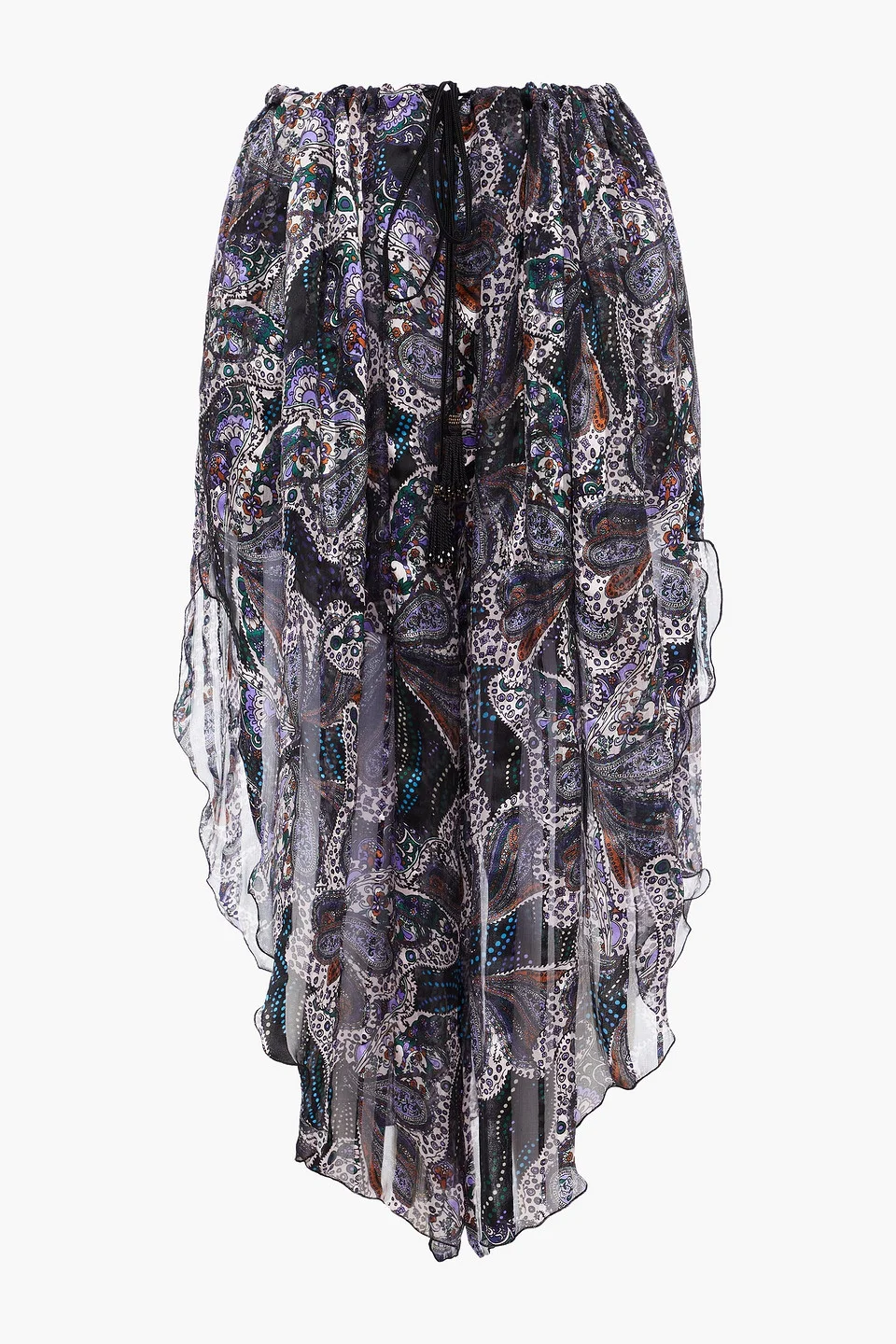 Skirt floral-print silk-chiffon tasseled ties gathered elasticated drawstring waist slips on built-in shorts handkerchief hem non-stretchy fabric mid-weight fabric dry clean made in italy 100% Silk Product Code 20346390235906767