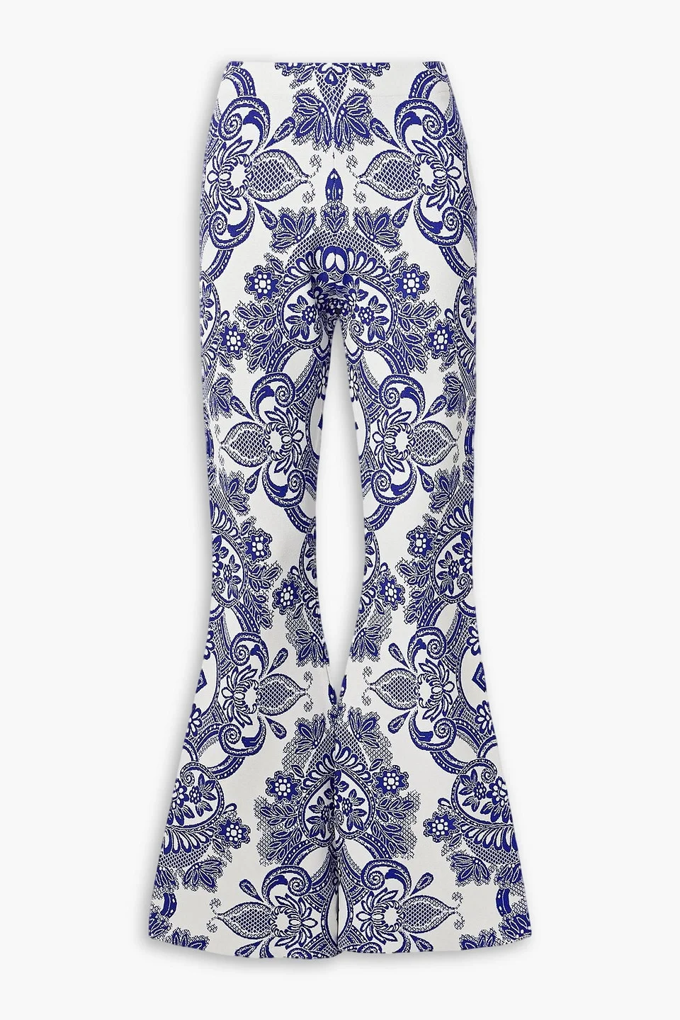Flared pants floral-design jacquard-knit elasticated waist high-rise cut mid-weight knit machine wash made in italy 83% Viscose 17% Polyester Product Code 46376663163074999