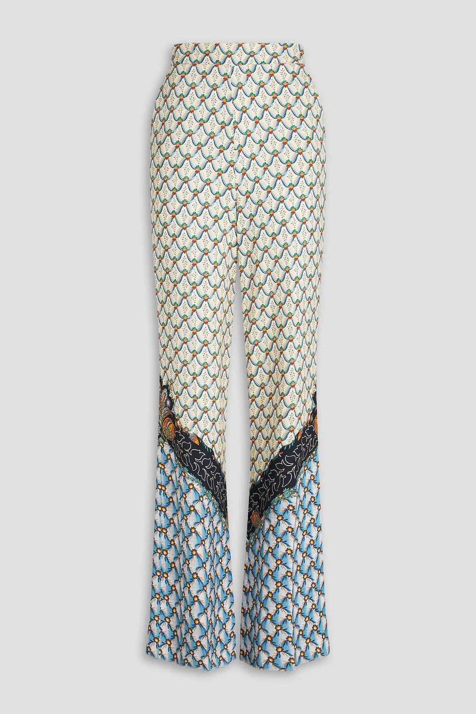 Printed crepe de chine wide-leg pants