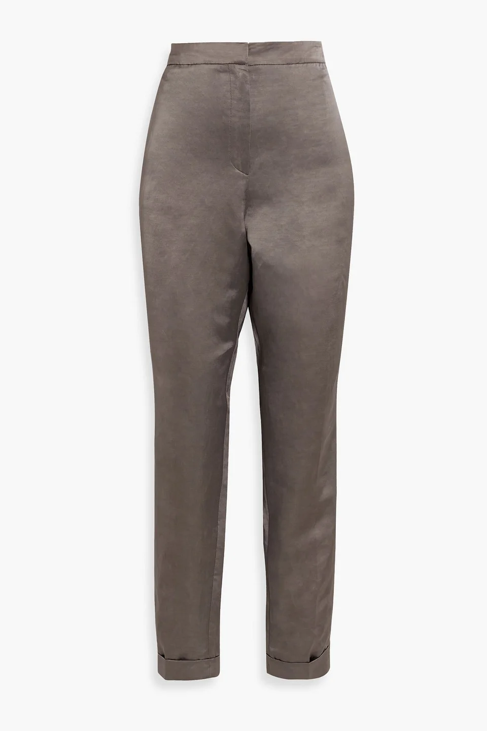 Tapered pants woven slub cropped two front slant pockets high-rise cut concealed hook and zip fastening at front non-stretchy fabric mid-weight fabric dry clean made in italy 54% Viscose 46% Linen Product Code 1647597290322569