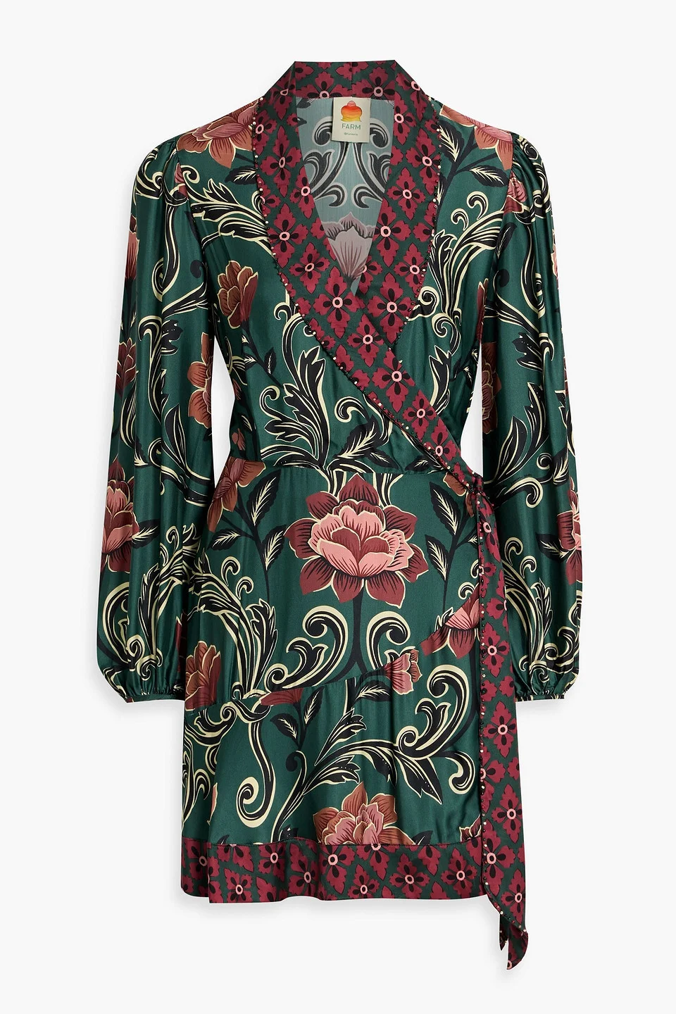 Bead-embellished floral-print crepe de chine mini wrap dress