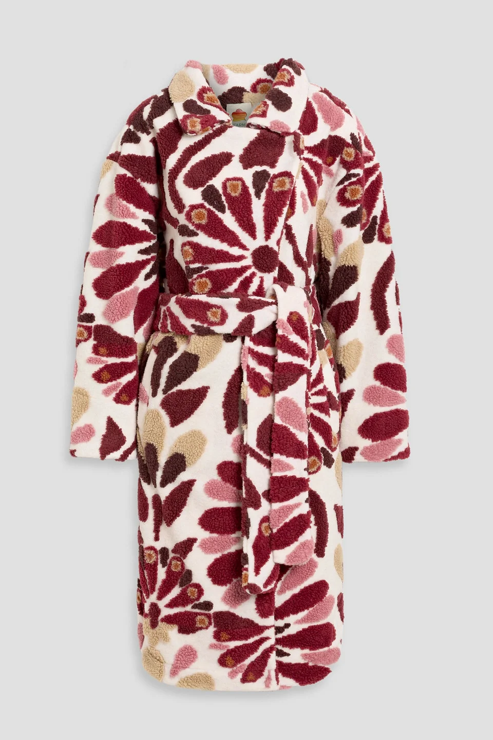Coat floral-design jacquard fleece detachable waist tie belt loops front slant pockets slips on weighted, non-stretchy fabric hand wash imported 70% Polyester 30% Wool Product Code 46376663162995424