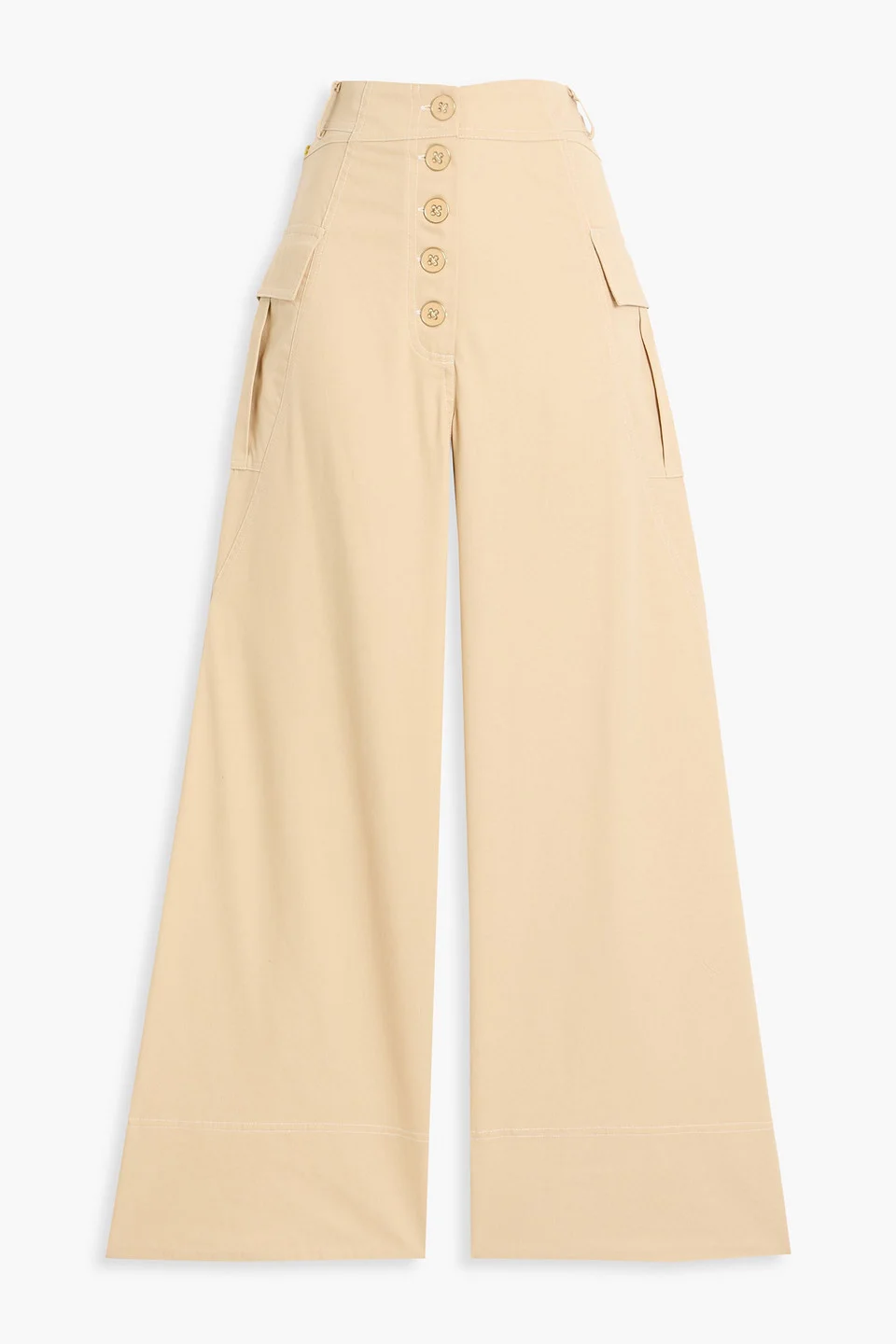 Wide-leg pants cotton-twill pleated bellows pockets back flap pockets belt loops high-rise cut button fastenings along front mid-weight, non-stretchy fabric machine wash imported 100% Cotton Product Code 46376663162992348