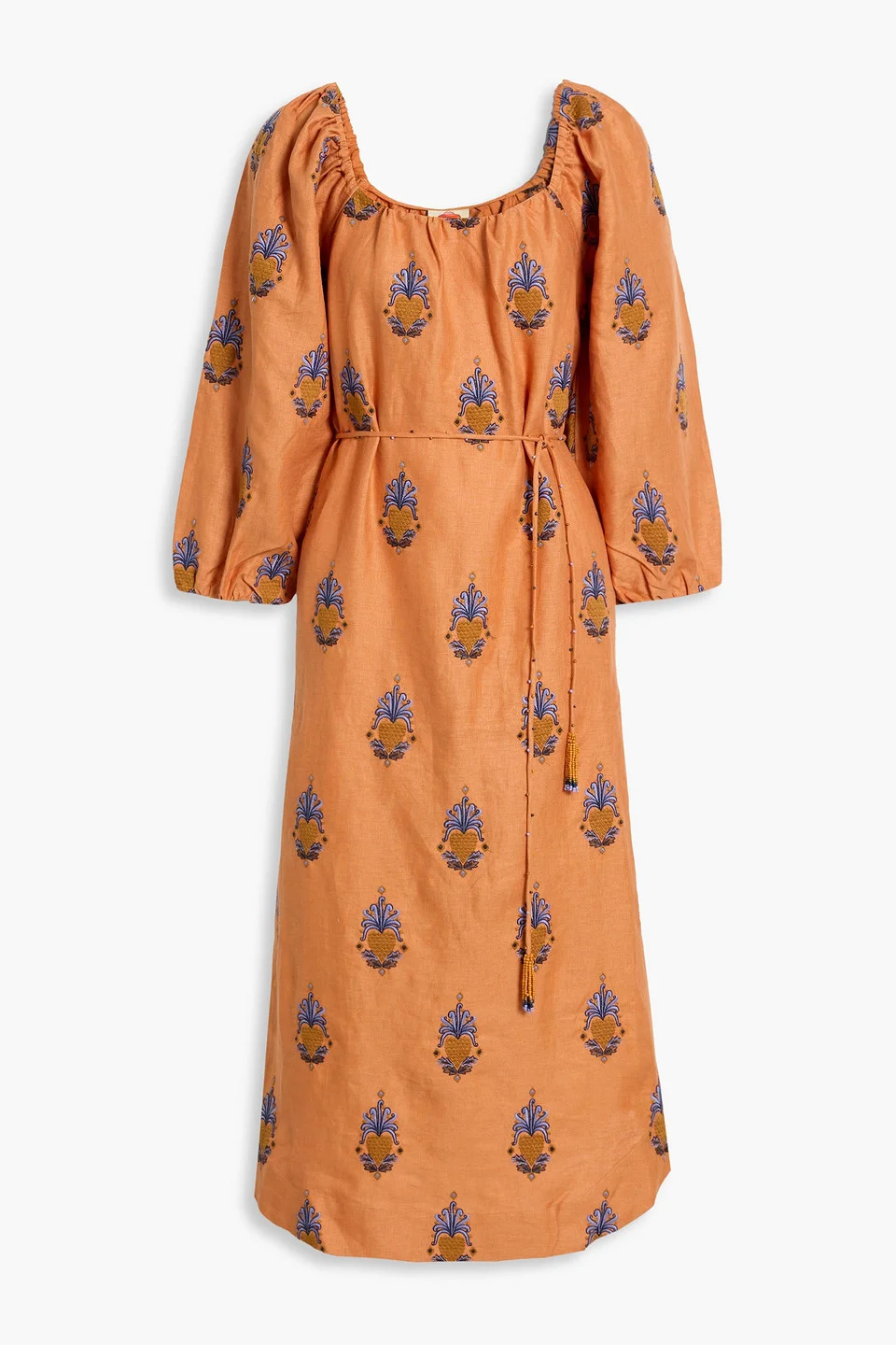 Embroidered linen midi dress