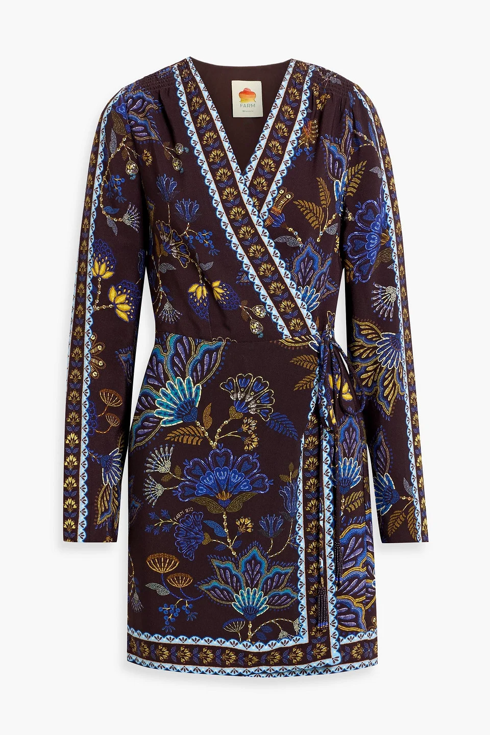 Wrap dress printed crepe beads tasseled ties ties at waist fully lined mid-weight, non-stretchy fabric machine wash imported 55% Rayon 45% Viscose Product Code 46376663162994363
