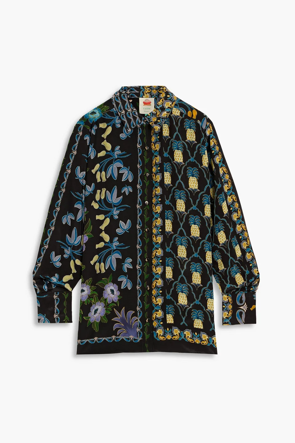 Shirt printed satin buttoned cuffs button fastenings through front mid-weight, non-stretchy fabric dry clean imported 100% Viscose Product Code 46376663162990190