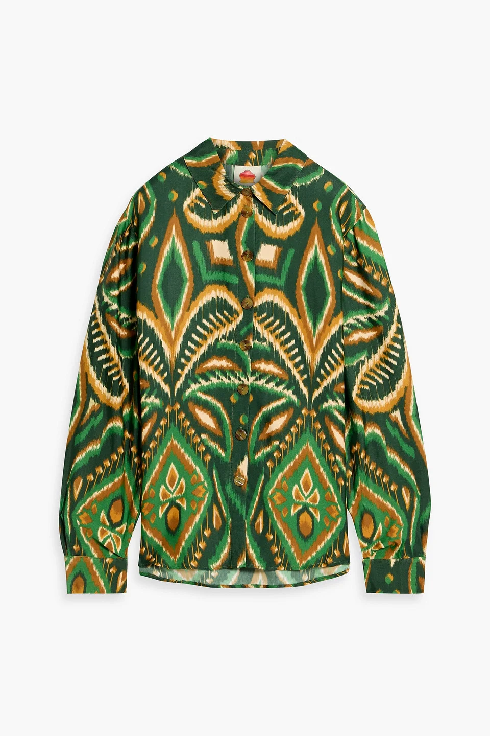 Shirt printed woven pleated back buttoned cuffs button fastenings through front mid-weight, non-stretchy fabric machine wash imported 100% Viscose Product Code 46376663162994514