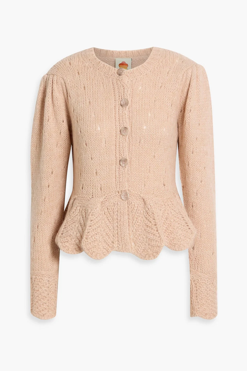 Cardigan pointelle-knit cable-knit ribbed trims button fastenings through front ruffled hem mid-weight knit hand wash or dry clean made in italy 42% Acrylic 30% Polyamide 14% Mohair wool 14% Wool Product Code 46376663162994872