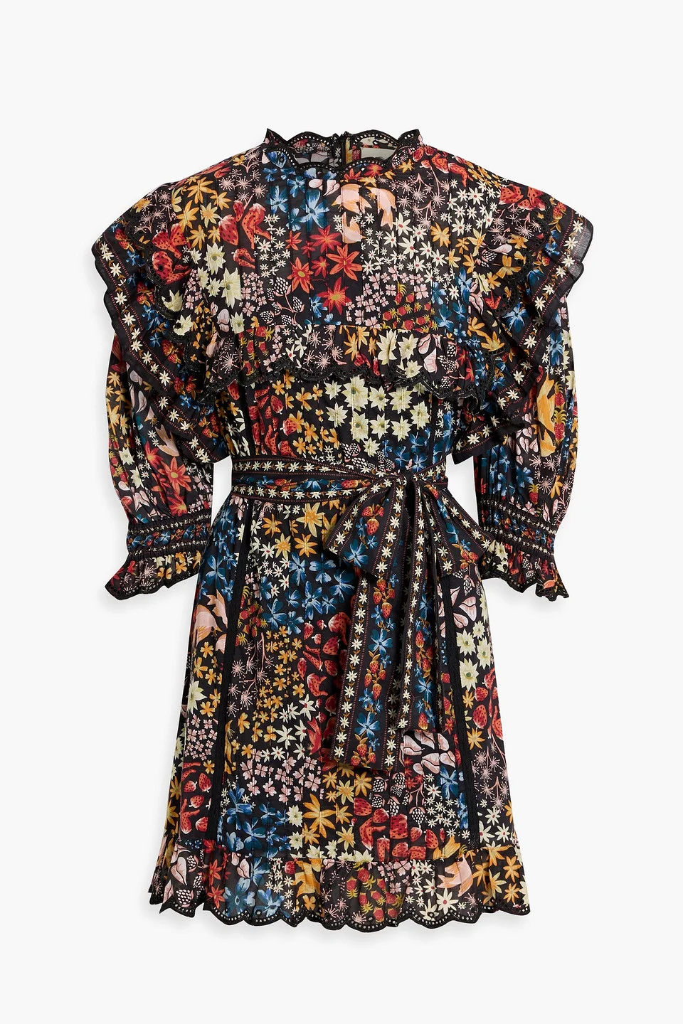 Ruffled printed cotton-voile mini dress