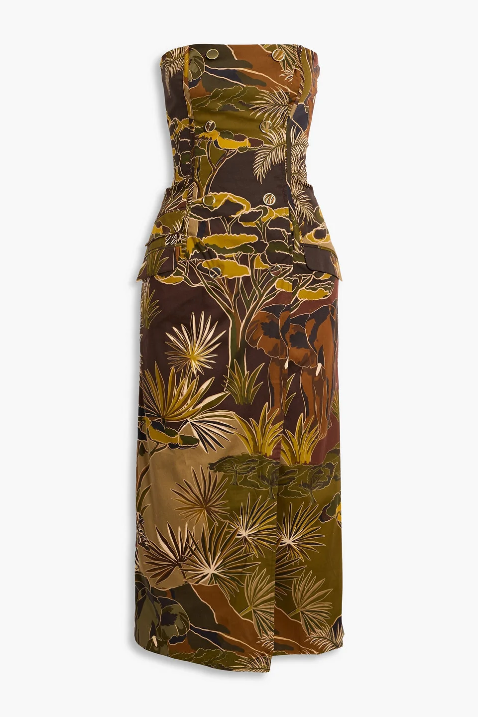 Strapless dress printed cotton-blend button-embellished concealed hook and zip fastening at side fully lined mid-weight, slightly stretchy fabric machine wash or dry clean imported 97% Cotton 3% Elastane Product Code 46376663162990175