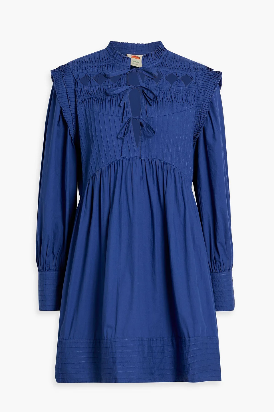 Tie-front pintucked cotton-poplin mini dress