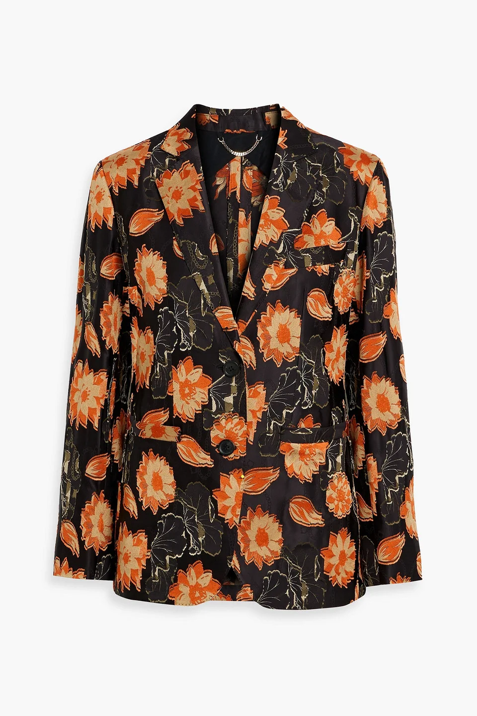 Blazer floral-jacquard shoulder pads buttoned cuffs two front welt pockets breast pocket button fastenings through front partially lined back vent non-stretchy fabric mid-weight fabric dry clean made in italy 52% Polyester 48% Viscose Product Code 1647597298507512