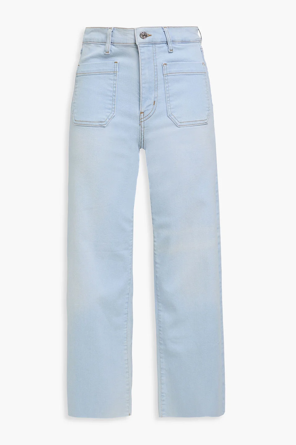 Wide-leg jeans faded denim cropped belt loops high-rise cut front patch pockets back patch pockets button and concealed zip fastening at front frayed cuffs mid-weight, slightly stretchy fabric machine wash imported 49% Cotton 21% Pre-consumer recycled cotton 17% Recycled polyester 11% Lyocell 2% Elastane Product Code 46376663163041946