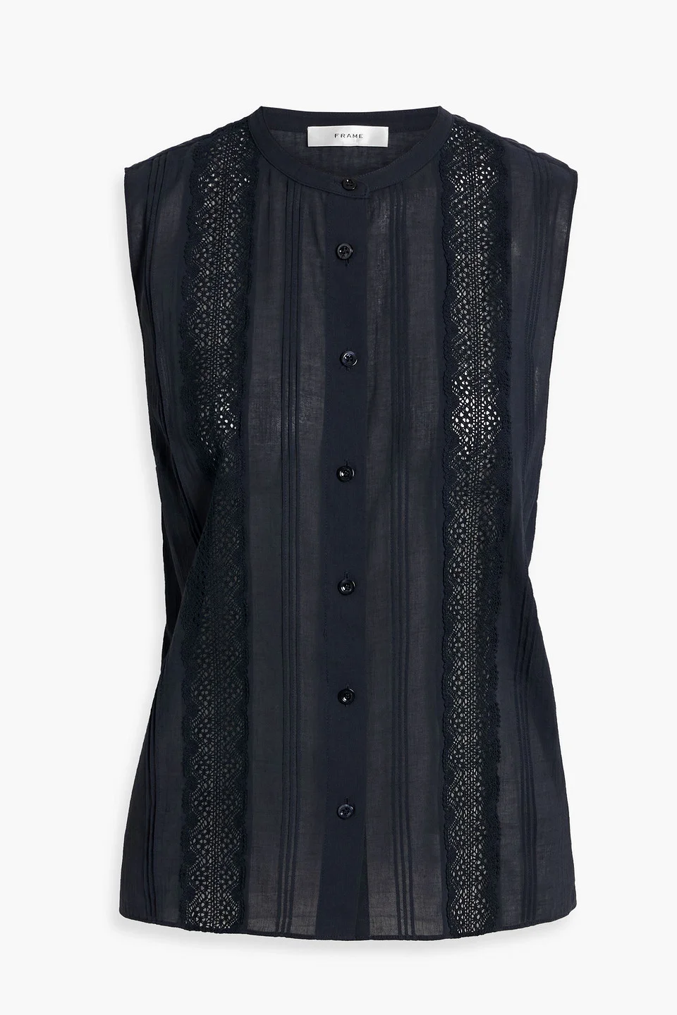 Top cotton-voile crocheted lace trims pintucked button fastenings through front lightweight, non-stretchy sheer fabric machine wash imported 100% Cotton Product Code 1647597346187708