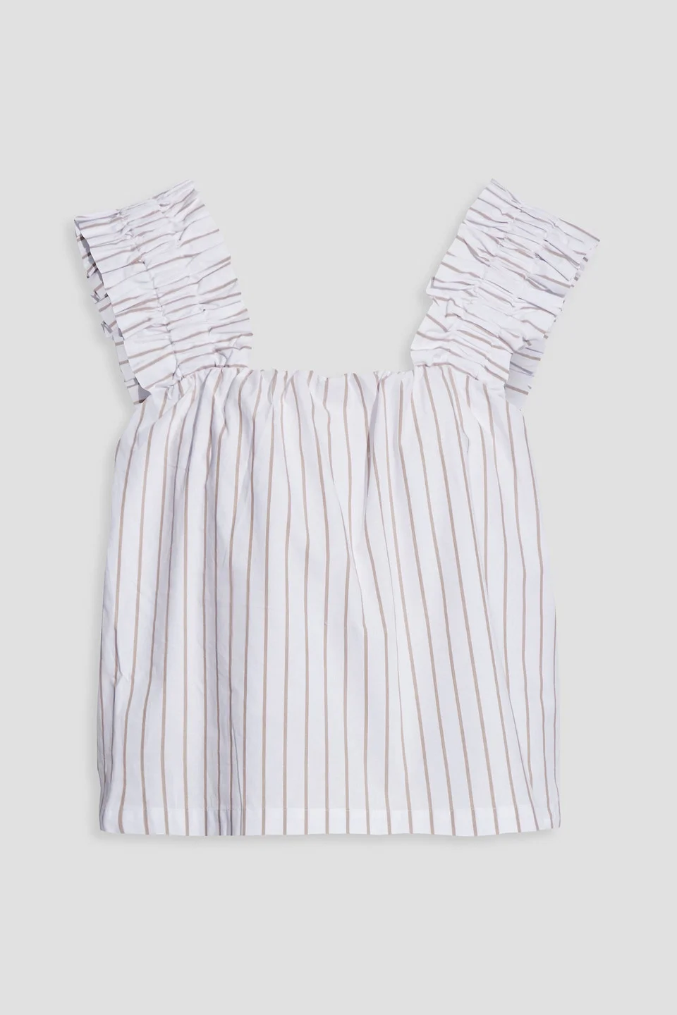 Top striped organic cotton-poplin ruffled trims elasticated neckline elasticated shoulders cropped button fastenings through back side slits fully lined non-stretchy fabric mid-weight fabric machine wash or dry clean imported mother-of-pearl buttons country/region of origin: indonesia 100% Organic Cotton Product Code 36093695688935089