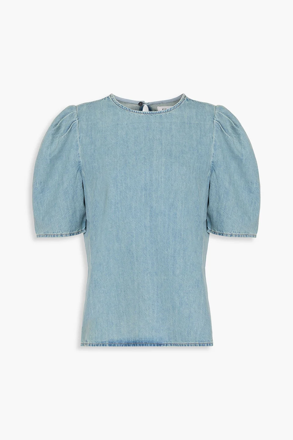 Blouse denim puffed sleeves button-fastening keyhole at back mid-weight, non-stretchy fabric machine wash imported 100% Cotton Product Code 1647597351247184