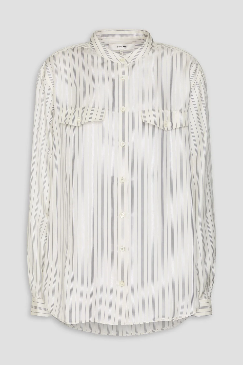 Shirt striped silk-twill pleated back buttoned cuffs breast pockets button fastenings through front dry clean mid-weight, non-stretchy fabric imported 100% Silk Product Code 46376663162845938