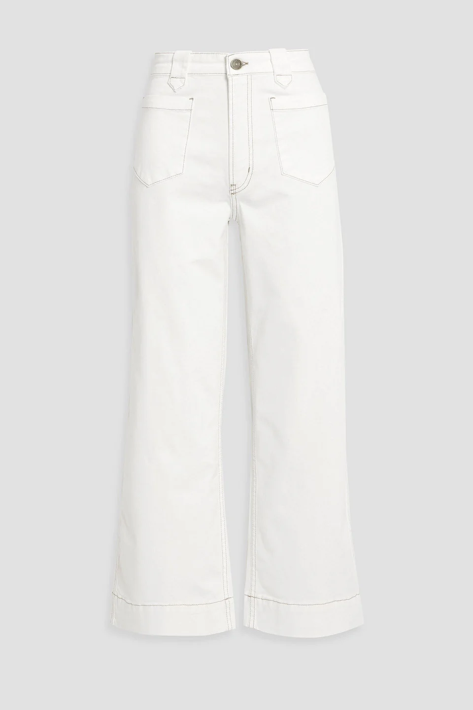 Straight-leg jeans belt loops high-rise cut two front patch pockets two back flap pockets button and concealed zip fastening at front mid-weight, slightly stretchy fabric machine wash imported 98% Cotton 2% Elastane Product Code 1647597355622890