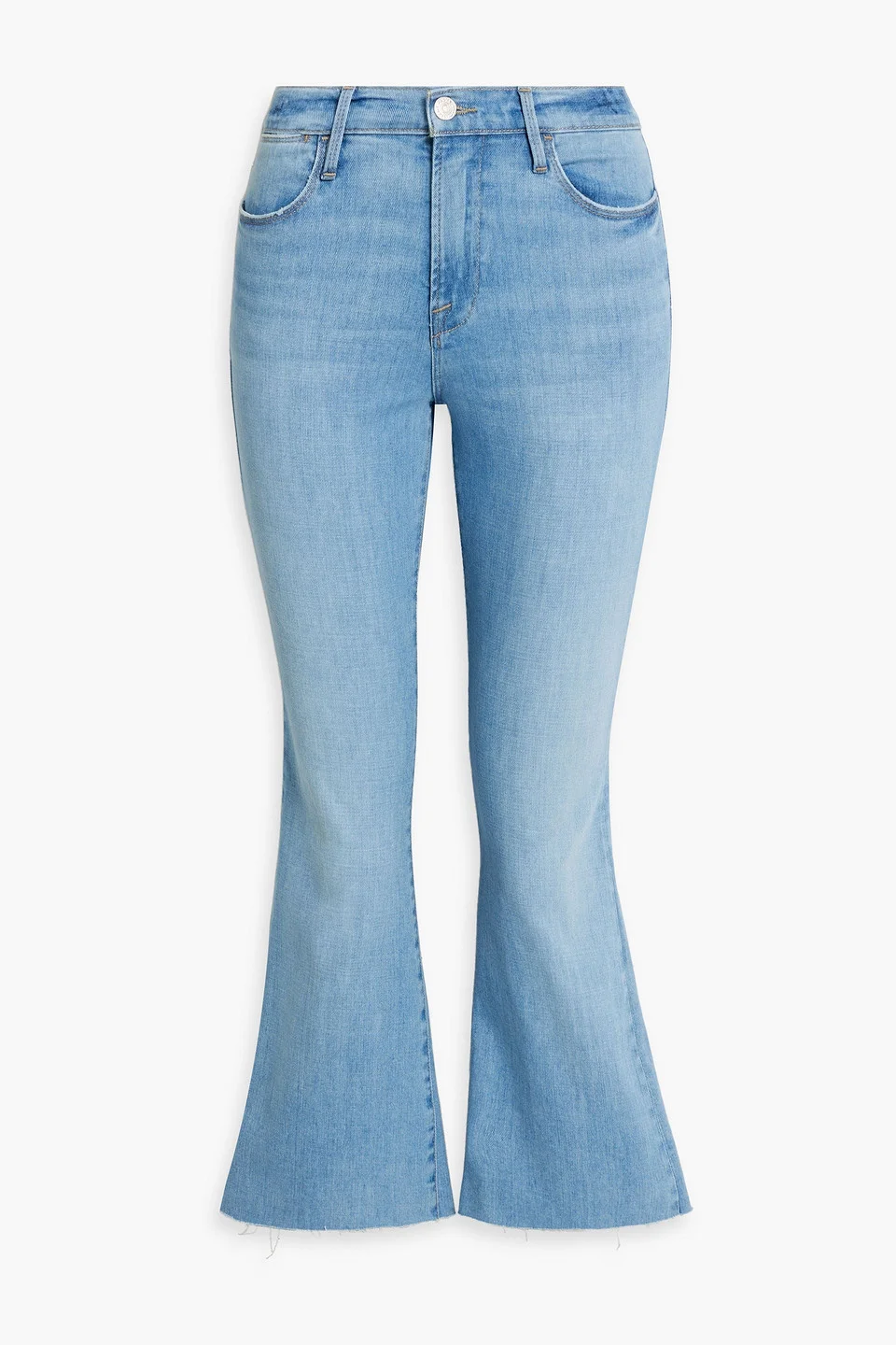 Kick-flare jeans denim belt loops high-rise cut multipockets button and concealed zip fastening at front frayed cuffs non-stretchy fabric mid-weight fabric hand wash imported 97% Cotton 3% Elastane Product Code 1647597324561170